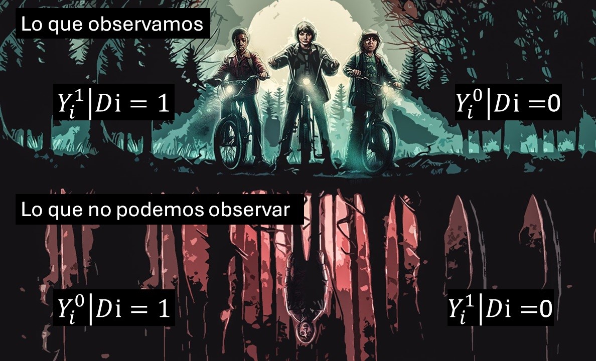 El outcome potencial no materializado queda relegado a ser el contrafactual (i.e. una entelequia de nuestra imaginación).